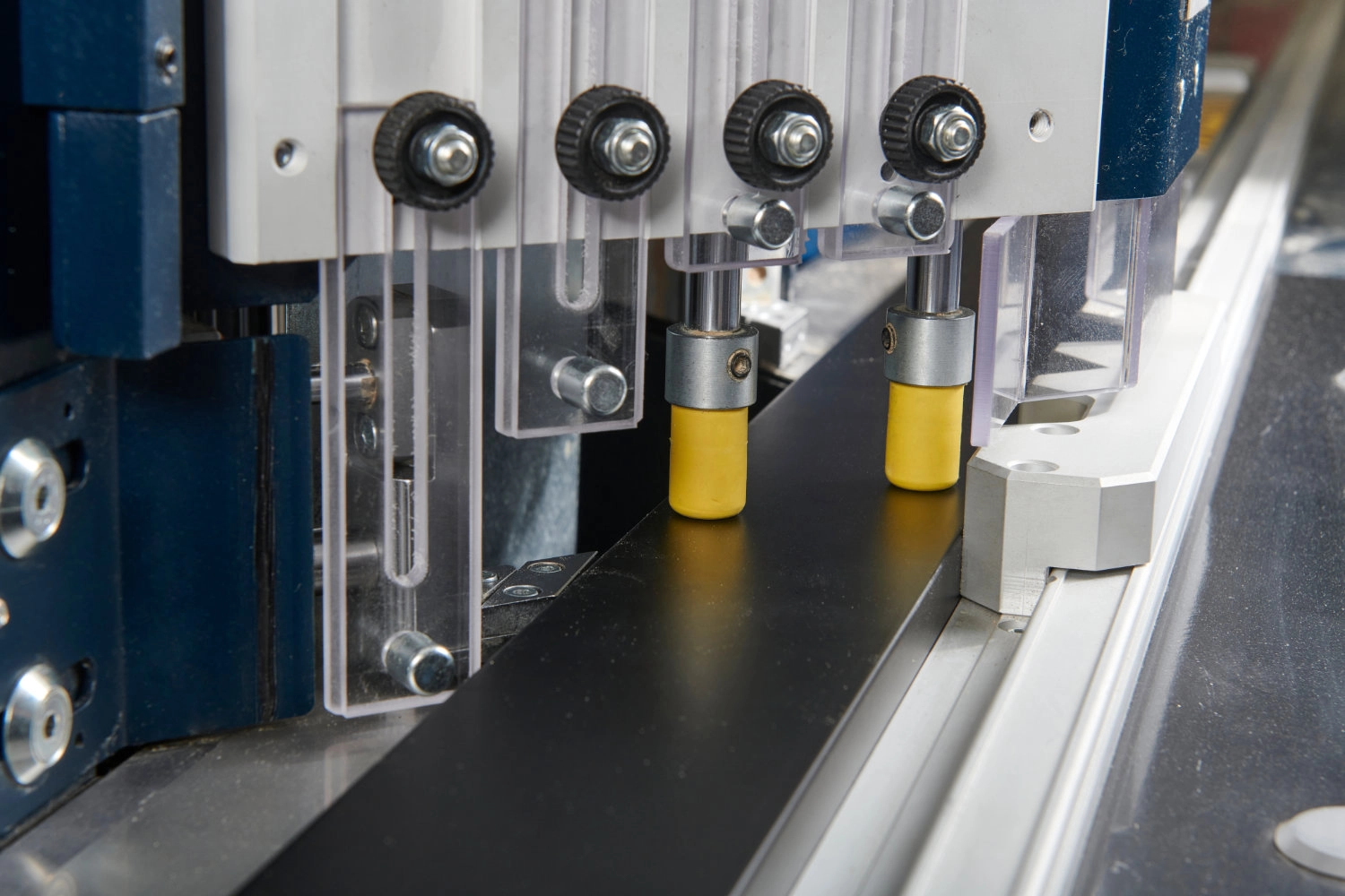 La T-400 est une machine solide et résistante qui convient à la production moyenne ou à la grande production. Elle a été conçue avec un système pneumatique qui contrôle le mouvement de descente des deux lames et qui assure une coupe précise et une remontée rapide des lames en question. Les deux lames sont fixées à 45° et se déplacent verticalement du haut vers le bas. À chaque descente, les deux coupes sont exécutées en produisant le moins de chutes possibles. Pendant la coupe, la baguette est solidement bloquée dans la position appropriée par des pistons verticaux qui assurent ainsi une coupe de grande qualité.